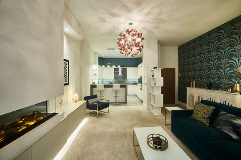 Taking inspiration from Art Deco elements, we formed and executed a full design scheme for the open plan living space including all furniture, upholstery and soft furnishings as well as the feature fireplace and bespoke cabinetry. With the customers away from site for the most part, we were both key holders and contact for all trades, overseeing the seamless delivery of the full project from start to finish.